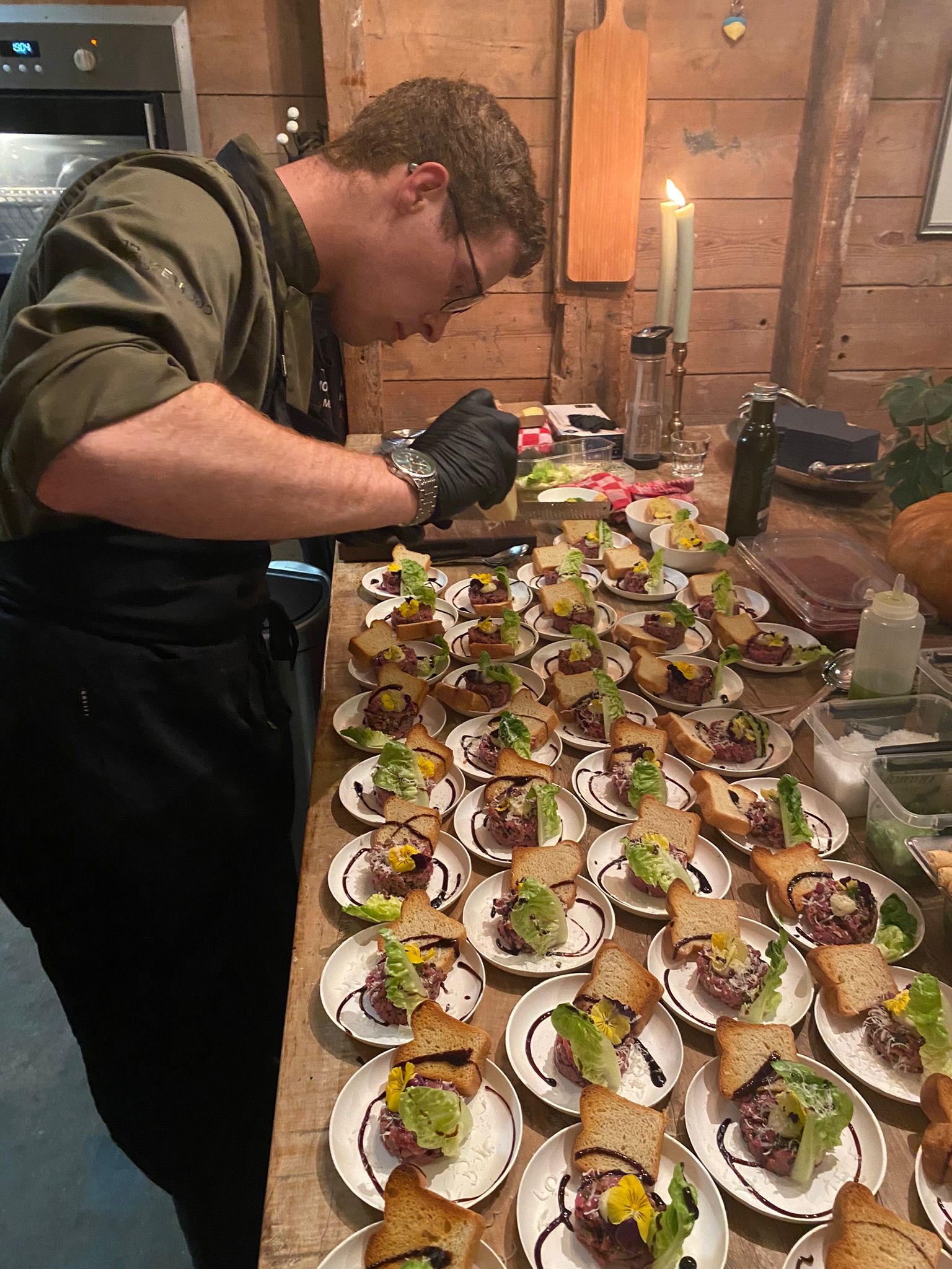 Een Walking dinner is een stijlvolle en informele manier van dineren waarbij gasten niet aan tafel zitten terwijl zij meerdere kleine, verfijnde gerechten geserveerd krijgen. Ideaal voor grotere groepen waarbij u geen zittend diner wilt.