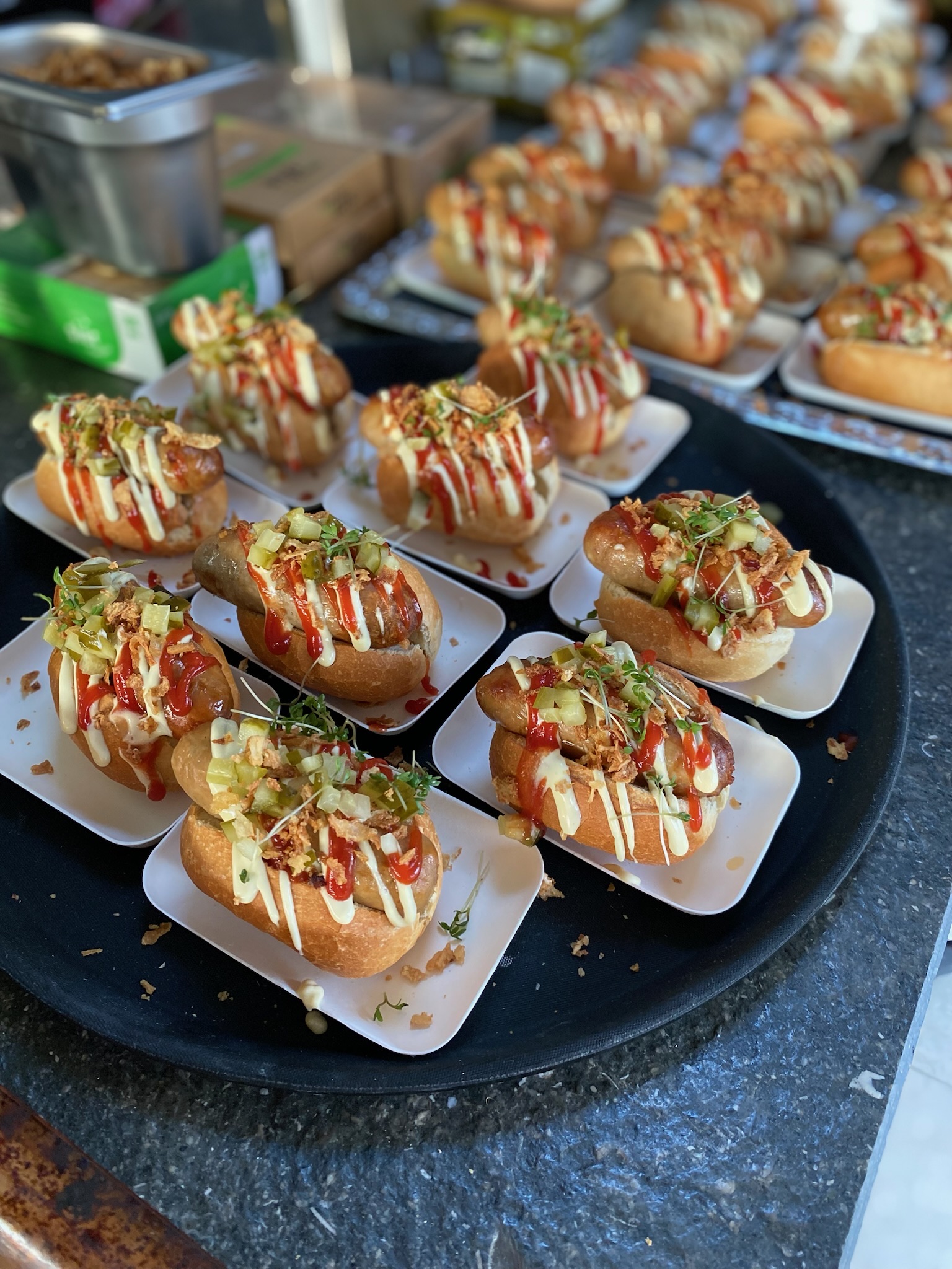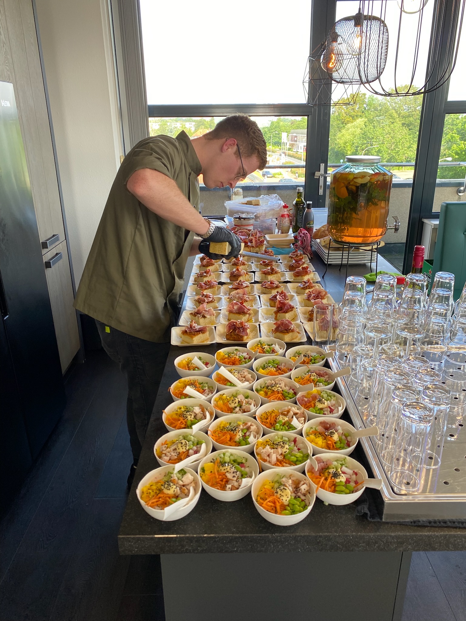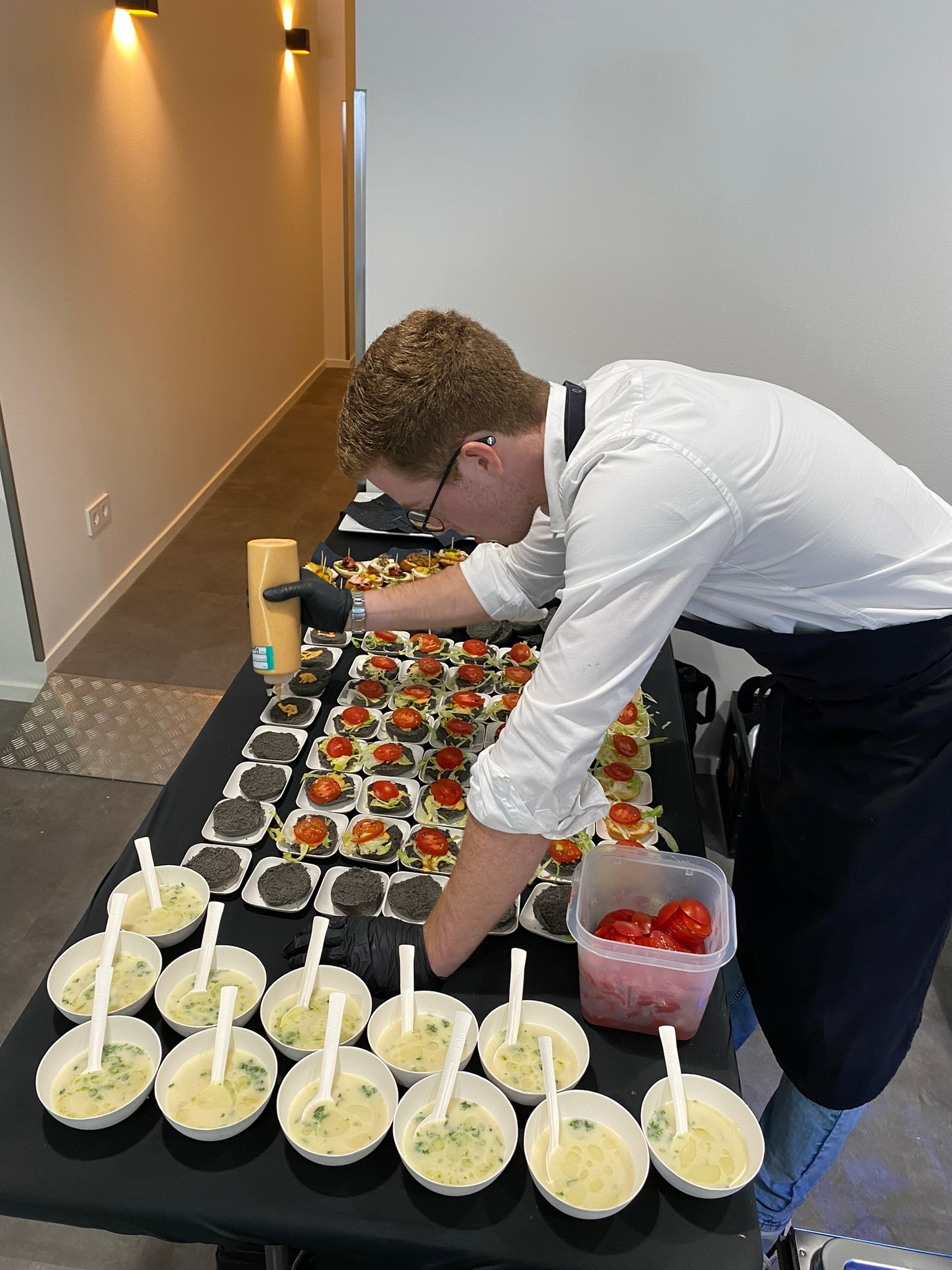 In plaats van één uitgebreid diner bestaat een walking dinner uit een reeks gangen in kleinere porties. Deze worden uitgeserveerd door de bediening of gepresenteerd op verschillende punten, zodat gasten kunnen eten, netwerken en genieten tegelijk.